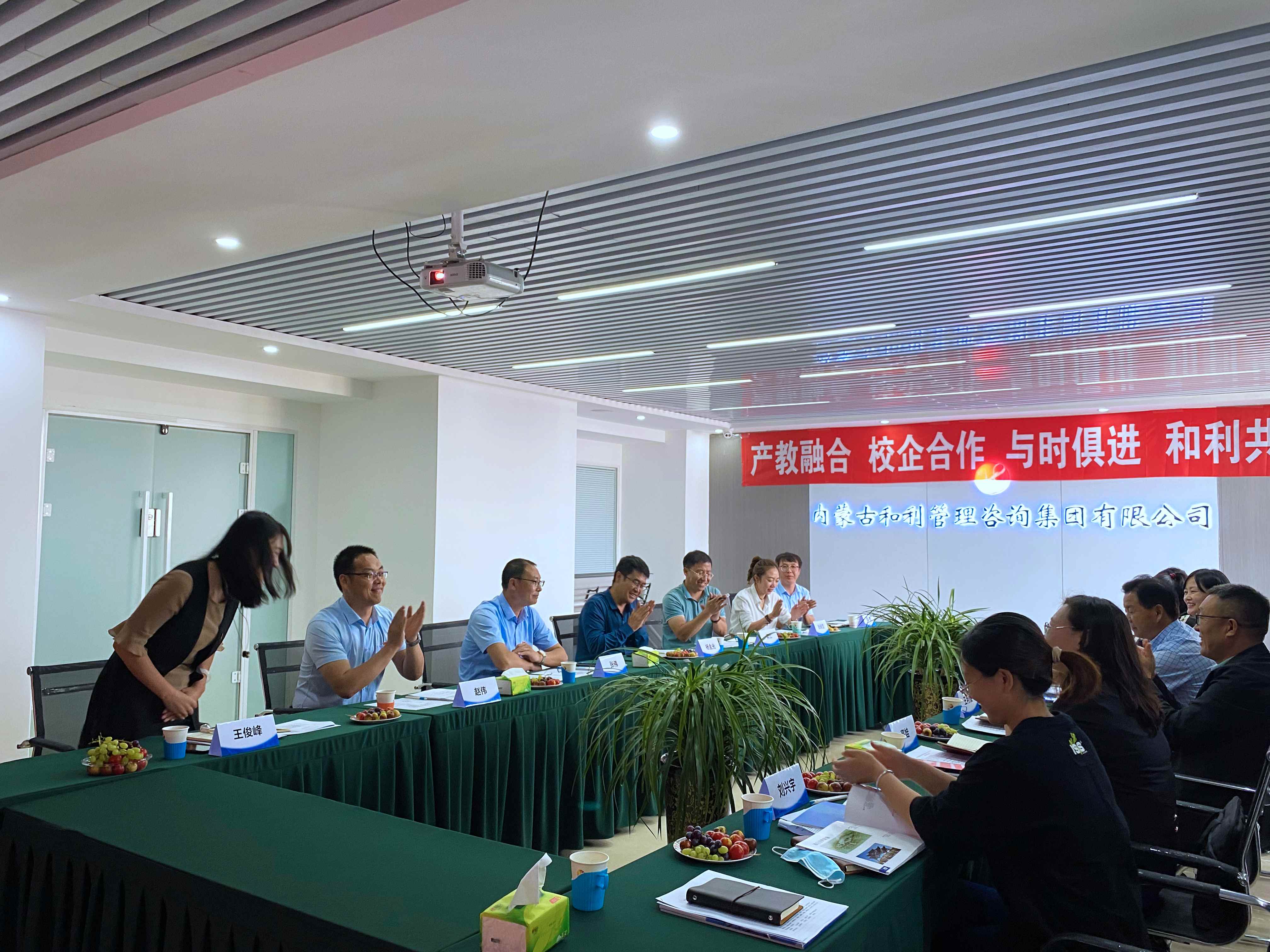 本次會議由集團副總、項目管理公司總經理渠江主持,介紹了公司參會領導及與會人員,并對校方的到訪表示熱烈歡迎。接著和利集團董事長楊金光發言,首先介紹了公司歷程,企業如何發展離不開大家的共同努力,更離不開公司“以人為本”的企業文化。又提到學校進行師資交流,企業的講師到學校代課,為學生傳授項目管理實踐經驗,摸清培養方向和側重點,為畢業生從學校走進社會起到紐帶作用。未來想與內蒙古建筑職業技術學院共同合作,借助更高水平的師資條件對企業儲備人才及畢業生進行培養。希望雙方增進資源共享,從深度和廣度上持續提升校企合作能級,構建校企共同體。